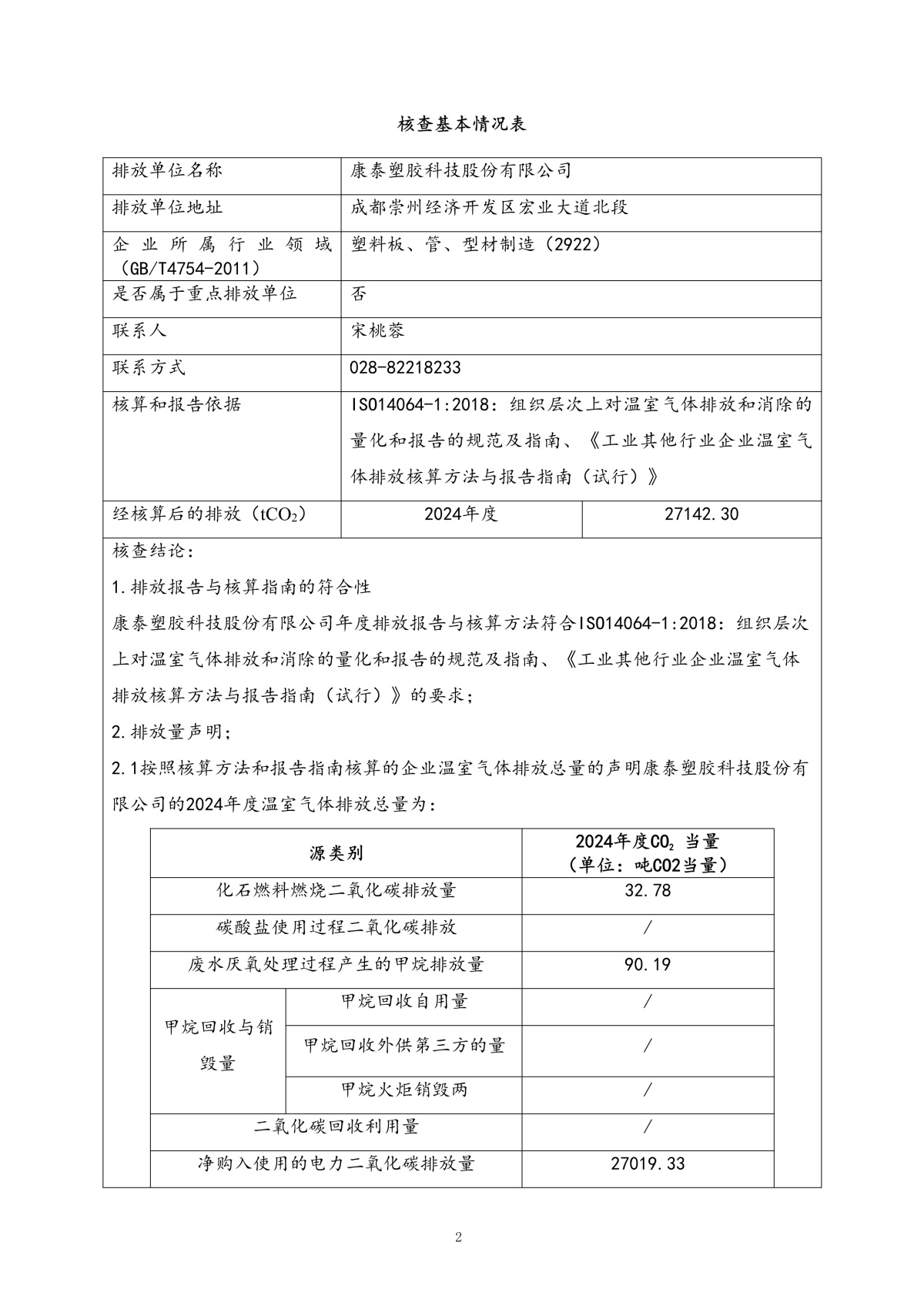 康泰2024溫室氣體核查聲明及溫室氣體核查報告